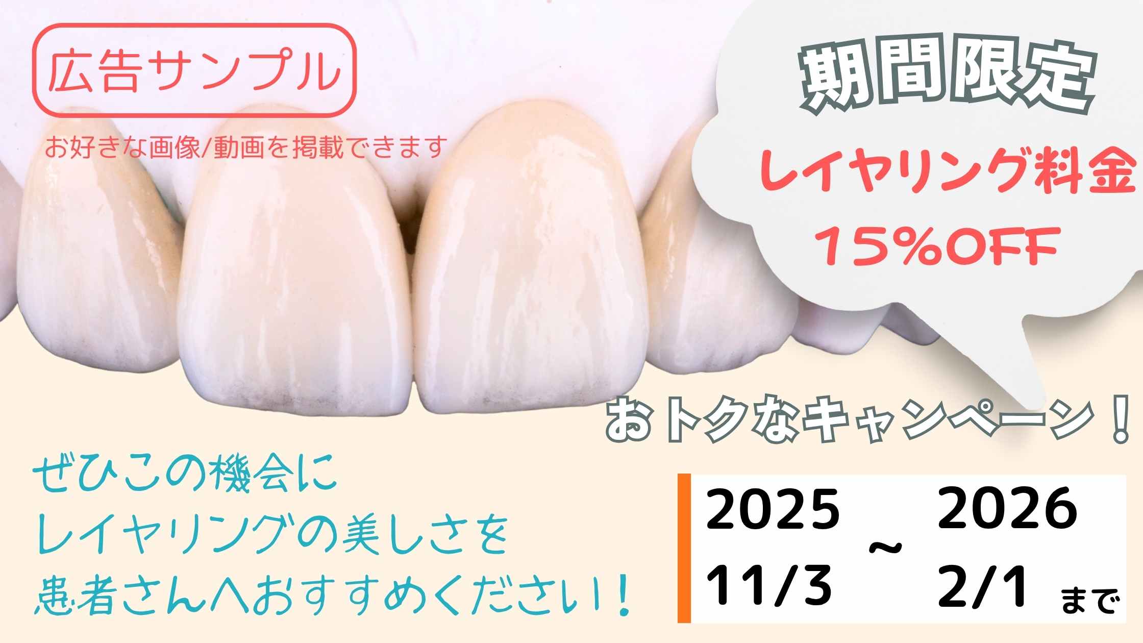 | ミニマム 初期設定費7,700円 祝日のみ 休業の 技工所向け | スタンダード 今だけ!無料キャンペーン中 医院との接点を 強化したい 技工所におすすめ | アドバンス 今だけ!無料キャンペーン中 医院向けの広告に 力を入れたい 技工所におすすめ | |