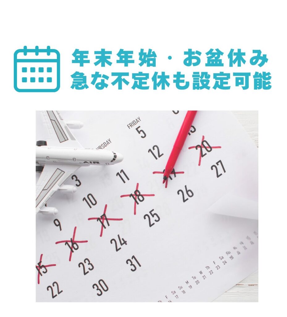 | 休業日設定 (祝日以外) 例)お盆・年末等 | |||